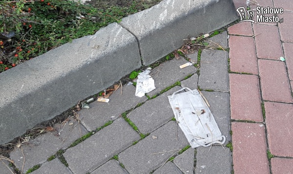 Idąc miastem zwróciliśmy uwagę na fakt, że na chodnikach, trawnikach, w okolicy śmietników, leżą sobie zużyte maseczki. Wyrzucamy je, a może też i czasem gubimy. Wiele jednak rzuconych byle gdzie zalega na ulicach.