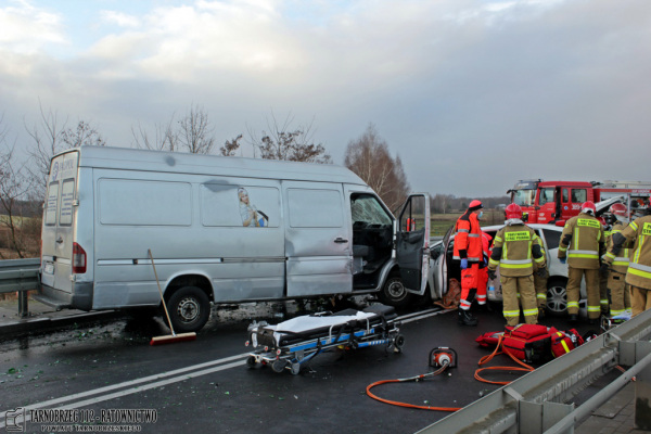 Wstępnie ustalono, że 22-letni kierowca mercedesa sprintera, jadąc od Stalowej Woli, zjechał na przeciwległy pas jezdni i zderzył się z osobową hondą. W mercedesie podróżował jeszcze 41-letni mieszkaniec powiatu stalowowolskiego. Rannych zostało 2 mężczyzn i 47-letnia kobieta kierująca hondą, którą strażacy musieli uwolnić z zakleszczonego pojazdu.