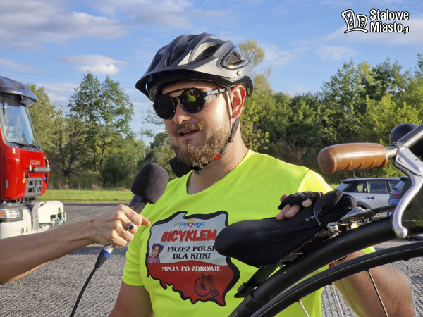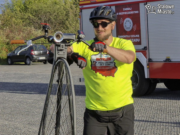 - Za mną około 900 km, a jeszcze 1800 przede mną. Chwilę zajęła mi nauka jazdy na tym rowerze, wsiadanie, zsiadanie, później człowiek uczy się tego skrętu. Jest to najgorsze, bo trzeba przełamać strach, że jest tak wysoko, to można upaść i ja upadłem, bo jak bez upadku się nauczyć. Nigdy bym się nie spodziewał, że kierowcy, którzy jadą pokazują mi kciuka, robią zdjęcia, filmiki. Każdy kilometr, który kręcę robię dla mojej córki Emilki, bo ona jest najważniejsza- mówi Łukasza Jęcza.
