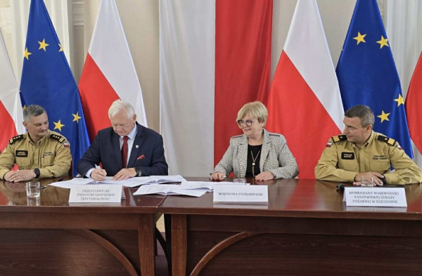 Ostateczne powierzenie zadania oraz przekazanie środków finansowych pochodzących z dotacji celowej dla Komendy Powiatowej PSP w Nisku nastąpiło poprzez podpisanie umowy w Starostwie Powiatowym w Nisku. W podpisaniu umowy uczestniczyli Starosta Niżański Robert Bednarz, Wicestarosta Niżański Józef Sroka, Komendant Powiatowy PSP w Nisku st. bryg. Andrzej Kołodziej oraz Inspektor ds. Zarządzania Kryzysowego, OC Michał Piędel.