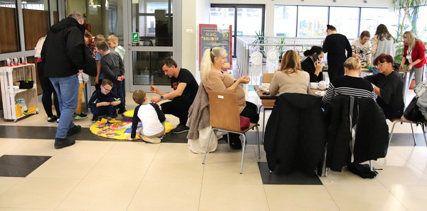 Prawdziwym hitem Nocy Bibliotek były piątkowe warsztaty wiązania tzw. łapaczy snów. Na 2. piętrze obiektu przy ul. Popiełuszki 10 pojawiły się tłumy czytelników. Przychodzono całymi rodzinami: mamy i tatusiowie pletli łapacze, podczas gdy ich dzieci brały udział w quizach z ciekawymi nagrodami. Można było poprosić o namalowanie kolorowego wzoru na twarzy, czy wykonanie brokatowego tatuażu. Można też było sprawdzić swój „Czytelniczy Horoskop”, czyli dowiedzieć się, jaki profil lektur najbardziej pasuje do własnego znaku zodiaku. Była wystawa książek i wyrobów rękodzielniczych „Do dzieła – rękodzieła”, a najmłodsi obejrzeli projekcję filmu „Biuro Detektywistyczne Lassego i Mai: Rabuś z pociągu”.