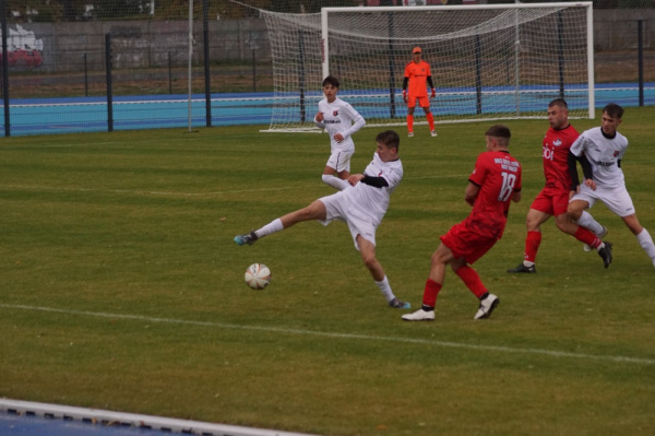 Sobotni mecz rozpoczął się z 35 minutowym opóźnieniem, z powodu .... braku trójki sędziowskiej. Kiedy już sędziowie dotarli na miejsce, można było rozpocząć pojedynek. Lepiej w to spotkanie weszli podopieczni trenera Pawła Kosiora, którzy już po 10 minutach objęli prowadzenie, po celnym strzale Bartosza Leśniowskiego. Gospodarze po utracie bramki dość nieśmiale próbowali wrócić do gry. Skupili się oni przede wszystkim na agresywnym odbiorze piłki, próbując wykorzystać przewagę w warunkach fizycznych, jaką niewątpliwie posiadali zawodnicy Orła. W 25 minucie gospodarze otrzymali prezent, w postaci rzutu wolnego na 20 metrze. Z prezentu tego skorzystali, zdobywając bramkę bardzo mocnym uderzeniem, z którym tym razem nie poradził sobie bramkarz Sanu, Maciej Gancarczyk. Bramka wyrównująca podrażniła młody zespół Sanu, który dążył do ponownego objęcia prowadzenia. Niestety mimo dużej przewagi w posiadaniu piłki, przyjezdni do przerwy nie zdołali pokonać raz jeszcze bramkarza gospodarzy. Udało im się jednak zrobić coś, co w przebiegu dalszej części meczu miało kluczowe znaczenie. Zmusili gospodarzy do ciągłego biegania za piłką i znacznej utraty sił.