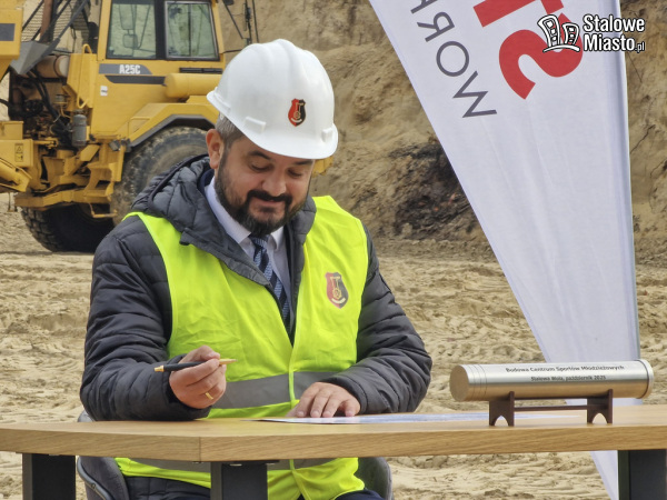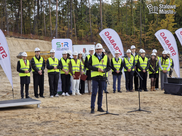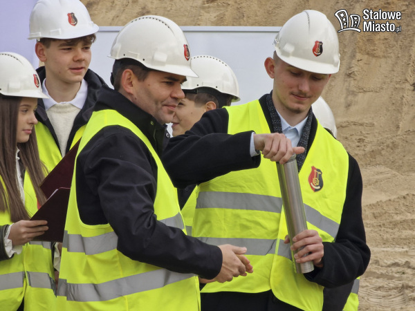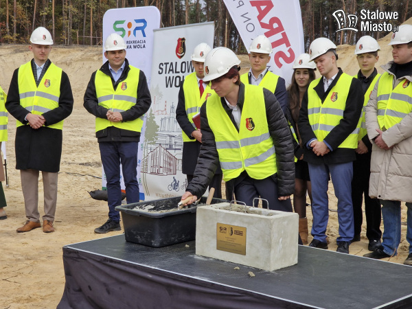 Wmurowanie kamienia węgielnego miało miejsce 22 października 2025 roku na ul. Energetyków. A że to centrum młodzieżowe, sprawy dziś w swoje ręce wzięli młodzi ludzie, którzy na co dzień uczą się w stalowowolskich szkołach i angażują w prace w Młodzieżowej Radzie Miasta: Lena Dębowska i Miłosz Nadbereżny. I to oni poprowadzili uroczystość, w której udział wzięli: prezydent Stalowej Woli Lucjusz Nadbereżny, senator Janina Sagatowska, poseł Rafał Weber, poseł Krzysztof Sobolewski, starosta powiatowy Janusz Zarzeczny, ks. Wacław Gieniec, w imieniu marszałka wiceprzewodnicząca Sejmiku Województwa Podkarpackiego Renata Knap, radna Sejmiku Kamila Piech, przewodnicząca RM Agata Krzek wraz z radnymi RM, skarbnik Miasta Michał Buwaj, przewodniczący Młodzieżowej Rady Miejskiej w Stalowej Woli Mikołaj Różański wraz radnymi MRM, zarząd spółki Sport i Rekreacja, naczelnicy wydziałów miejscy i inspektorzy, przedstawiciele firmy budowlanej, realizującej zadanie.