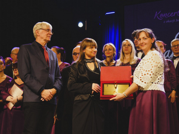 Jubileusz był także okazją do przekazania symbolicznego graweru z gratulacjami od prezydenta miasta Lucjusza Nadbereżnego oraz przewodniczącej Rady Miejskiej Agaty Krzek, skierowanego do dyrygentki Kateryny Serediuk, która dziś z pasją kontynuuje dzieło swojego mistrza. W treści gratulacji czytamy: