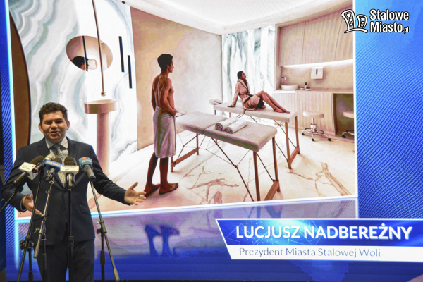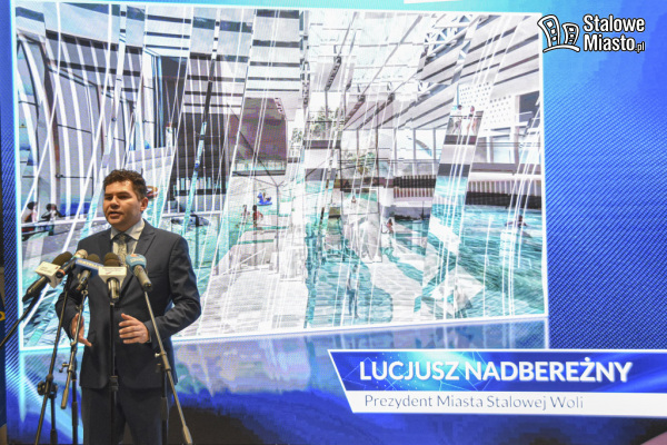 - Ten projekt jest zupełnie niesamowity, zachwycający, nowoczesny, a jednocześnie zaprojektowany na miarę możliwości Stalowej Woli, na miarę naszego regionu, tak aby on nie był przewymiarowany, aby również pod względem swojego codziennego funkcjonowania, był uszyty na miarę naszych możliwości, naszych potrzeb. Bez wątpienia mówimy to dzisiaj z dumą, to będzie pierwszy park wodny, pierwszy obiekt o typie aquaparku, który powstanie w województwie podkarpackim, w regionie skrzyżowania trzech województw. To duma dla miasta Stalowej Woli, że nasza praca, nasze wysiłki, projektowanie sprawiają, że miasto Stalowa Wola właśnie na mapie naszego regionu będzie posiadać tak wyjątkowy, tak piękny, tak nowocześnie zaprojektowany obiekt- mówił podczas uroczystości prezydent Lucjusz Nadbereżny.