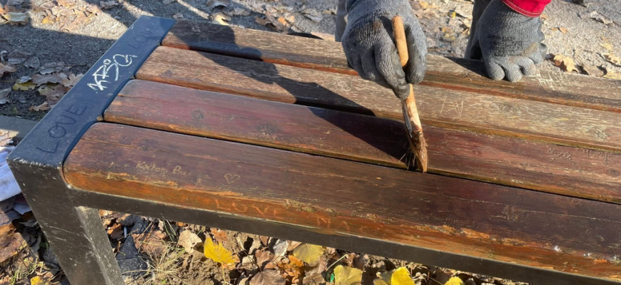 Po lecie i znacznej eksploatacji ławek stojących nad Sanem, czas doprowadzić je do stanu pierwotnego i zabezpieczyć przed zimą.