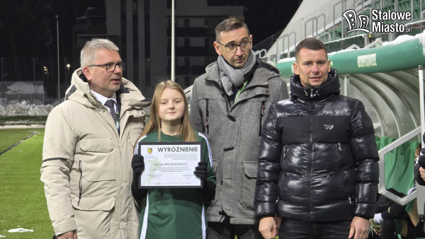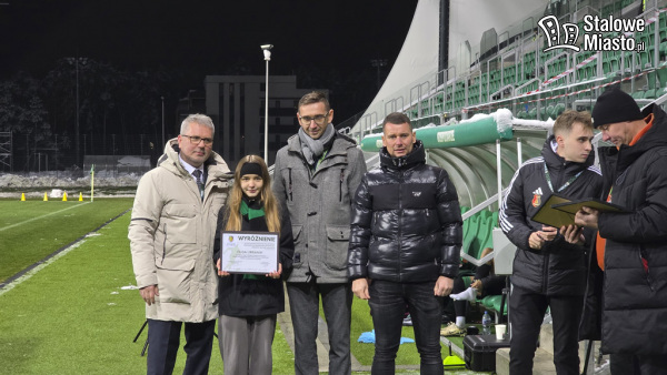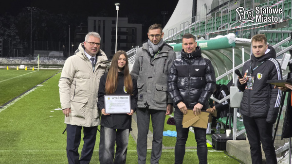 W przerwie meczu na murawę zaproszono młodą Stalówkę. Wręczono wyróżnienia piłkarkom i piłkarzom Akademii, którzy w rundzie jesiennej 2025 wykazali się wzorową postawą.