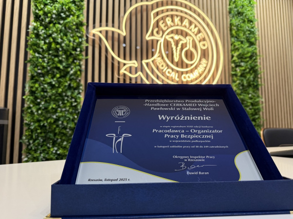 Firma CERKAMED ze Stalowej Woli, od ponad 25 lat jeden z wiodących polskich producentów materiałów stomatologicznych, została wyróżniona w regionalnym etapie 32. edycji konkursu „Pracodawca – Organizator Pracy Bezpiecznej”, organizowanego przez Państwową Inspekcję Pracy.