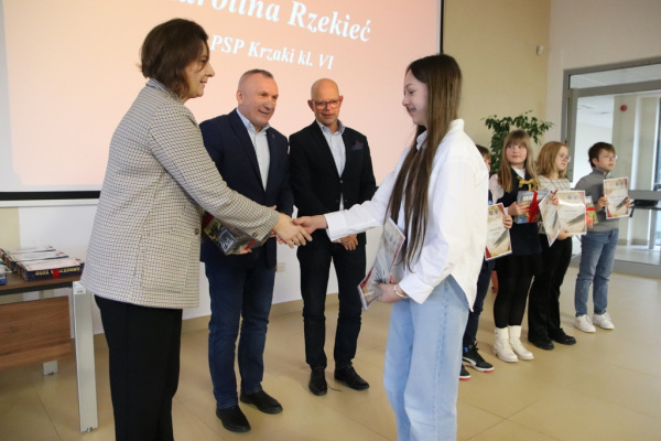 - Katarzyna Szwedo Społeczne Liceum Ogólnokształcące kl. IV.Dyplomy oraz nagrody- gry planszowe wręczyli przedstawiciele organizatorów: Stanisław Sobieraj, wicestarosta stalowowolski, Mariusz Potasz, dyrektor I LO im. KEN oraz Beata Życzyńska, dyrektor MBP im. M. Wańkowicza.