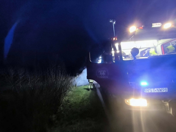 Zdarzenie miało miejsce Między Turbią a Wólką Turebską, przy ul. Św. Jana Pawła II. Auto zapaliło się nad ranem 6 grudnia 2025 roku.
