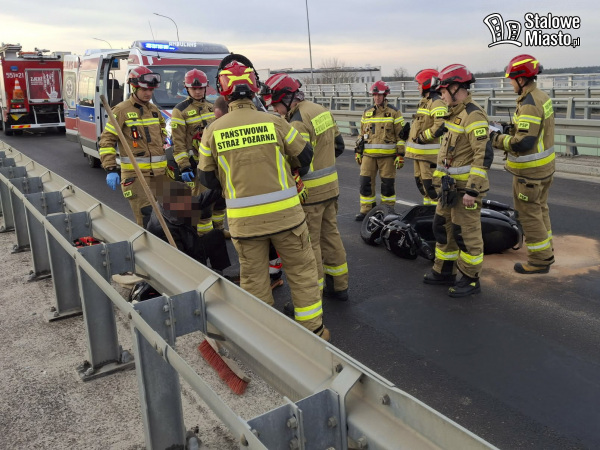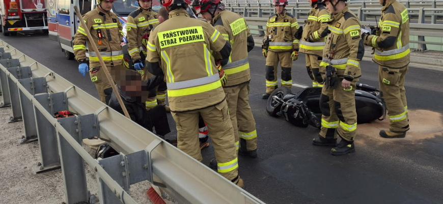 Wypadek na wiadukcie. Ranny motocyklista w szpitalu