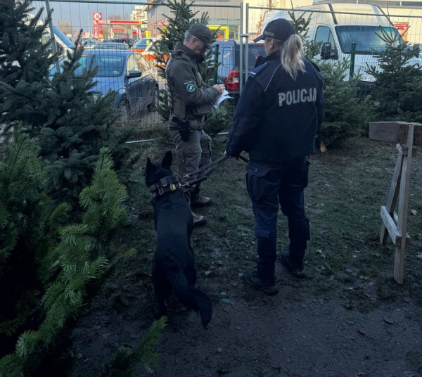 Funkcjonariusze sprawdzają, czy pozyskiwanie i sprzedaż choinek odbywa się zgodnie z przepisami, a sprzedający posiadają odpowiednią dokumentację potwierdzającą legalne pochodzenie drzewek.