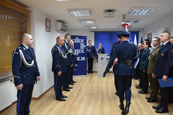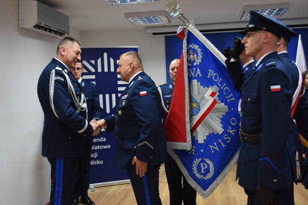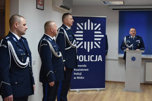 Po uroczystym pożegnaniu i przywitaniu się ze sztandarem głos zabrał nadinsp. Andrzej Patrzałek, Komendant Wojewódzki Policji w Rzeszowie, który podziękował insp. Arturowi Wasiucie za wzorową służbę na rzecz bezpieczeństwa lokalnej społeczności. Nowemu przełożonemu niżańskich policjantów, mł. insp. Rajmundowi Murkowi, życzył wielu sukcesów oraz wytrwałości w realizacji obowiązków służbowych.