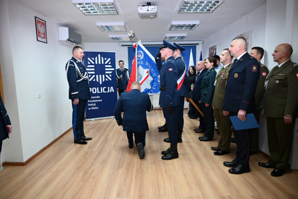 Insp. Artur Wasiuta pożegnał się ze sztandarem jednostki, którą kierował od roku. Na stanowisko Komendanta Powiatowego Policji w Nisku został powołany 8 stycznia 2025 roku. Podczas dwunastomiesięcznej służby, dzięki dobrej współpracy z lokalnymi samorządami, udało mu się zrealizować wiele przedsięwzięć na rzecz niżańskiej jednostki. W czasie swojej ponad 25- letniej służby był odznaczany m.in.: Brązowym Medalem za Długoletnią Służbę, Brązową Odznaką „Zasłużony Policjant” oraz Srebrną Odznaką „Zasłużony Policjant”.