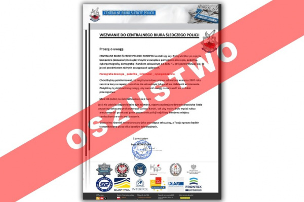 Znów odnotowywana jest aktywność oszustów, którzy za pomocą poczty elektronicznej podszywają się pod policjantów Centralnego Biura Śledczego Policji. Zachowajmy szczególną ostrożność, bo przestępcy tylko czekają na nasz błąd. Potrafią podrobić pisma, które wyglądają jak prawdziwe. Mają nawet specjalne (oczywiście podrobione) na nich pieczątki, co może spowodować, że uwierzymy, że są prawdziwe.