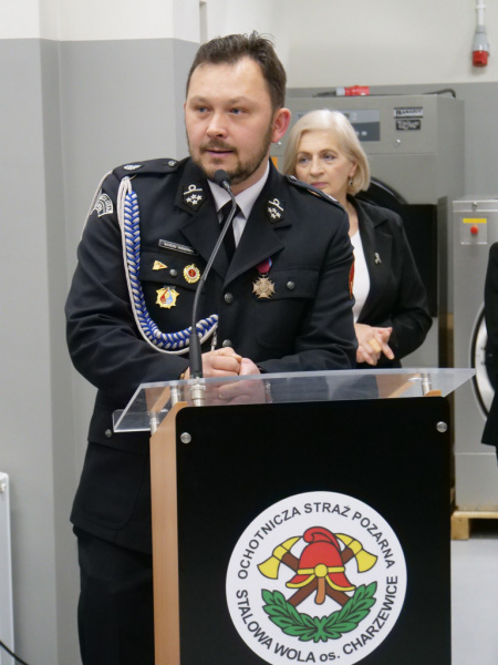 Mateusz Wiśniewski, prezes OSP Stalowa Wola – Osiedle Charzewice w sposób szczególny podziękował za ogromne środki, które zostały przeznaczone w ostatnich latach na rozbudowę, wyposażenie remizy i nowoczesny sprzęt dla strażaków z Charzewic, który służą społeczeństwu już od 1882 roku.