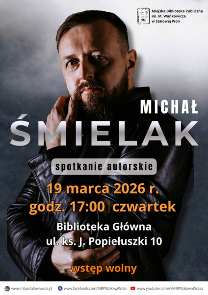 Michał Śmielak będzie gościem kolejnego spotkania autorskiego w Miejskiej Bibliotece Publicznej w Stalowej Woli. Wielbiciele talentu pisarza powinni sobie rezerwować termin: czwartek, 19 marca, godzinę 17:00. Spotkanie z autorem powieści „Śnieg przykryje” nominowanej do tytułu Książka Roku 2025 odbędzie się w Bibliotece Głównej przy ul. ks. J. Popiełuszki 10.