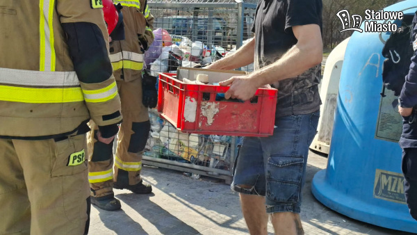 Na śmietniku wylądowała skrzynka z podejrzanymi pojemnikami. Szybko ustalono, że są w nich niebezpieczne substancje chemiczne. Na miejsce wezwano służby.