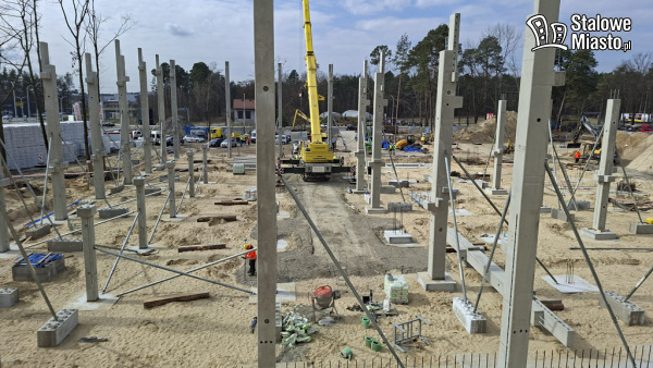 Kolejne kluczowe etapy budowy obejmują montaż dużych, 20- metrowych słupów konstrukcyjnych oraz prefabrykowanych dźwigarów nośnych dachu. Szczególnie nad parkiem trampolin pojawią się 30- metrowe dźwigary, które połączą całą konstrukcję, zapewniając stabilność i bezpieczeństwo.