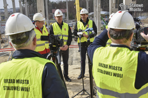 Na terenie budowy Centrum Sportów Młodzieżowych w Stalowej Woli odbyła się konferencja prasowa podsumowująca dotychczasowy postęp prac. W spotkaniu udział wzięli: prezydent Lucjusz Nadbereżny, przewodnicząca Rady Miasta Agata Krzek, radni Adam Krotoszyński i Wiesław Siembida oraz wykonawca inwestycji.