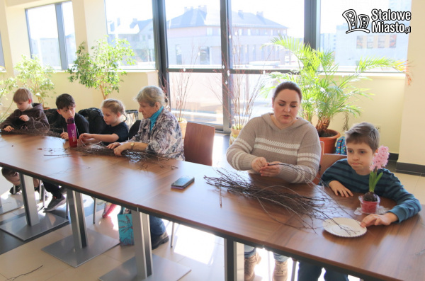 Głównym motywem przewodnim warsztatów było tworzenie unikatowych kompozycji stroikowych. Uczestnicy udowodnili, że najpiękniejsze dekoracje powstają z tego, co daje nam natura. Do dyspozycji twórców oddano szeroki wachlarz materiałów: brzozowe gałązki, z których formowano fantazyjne gniazda i konstrukcje przypominające leśne kapliczki, drewniane plastry, służące jako solidna i estetyczna podstawa stroików i wiele innych elementów dekoracyjnych związanych z tematem warsztatów. Serce każdej ozdoby świątecznej stanowiły żywe rośliny kojarzone z wiosną. Seniorzy z cierpliwością dzielili się swoim doświadczeniem w splataniu gałązek, podczas gdy dzieci wnosiły do projektów świeżość i dziecięcą fantazję. Wspólna praca sprzyjała rozmowom i integracji – bariery wiekowe zdawały się nie istnieć, a ich miejsce zajął wspólny cel: stworzenie wyjątkowej ozdoby świątecznej.