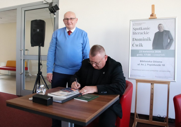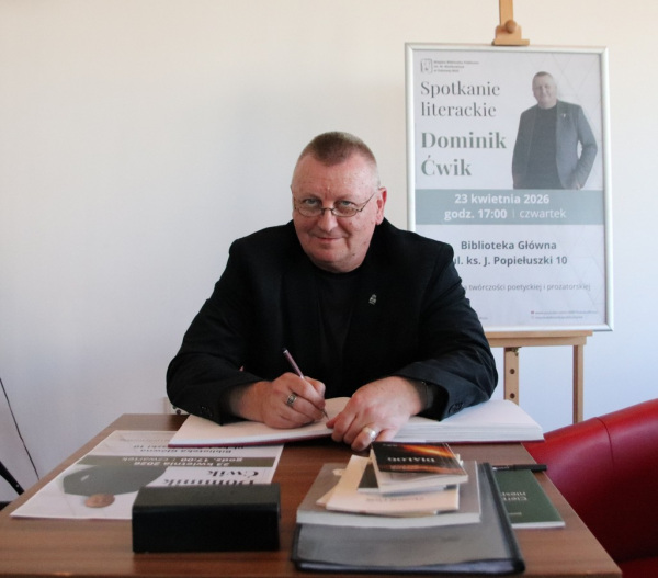 W miniony czwartek, 23 kwietnia, Miejska Biblioteka Publiczna gościła Dominika Ćwika- poetę i prozaika, laureata wielu ogólnopolskich i regionalnych konkursów poetyckich. Wieczór autorski stał się okazją do zaprezentowania twórczości pisarza w wyjątkowej, dwugłosowej oprawie.