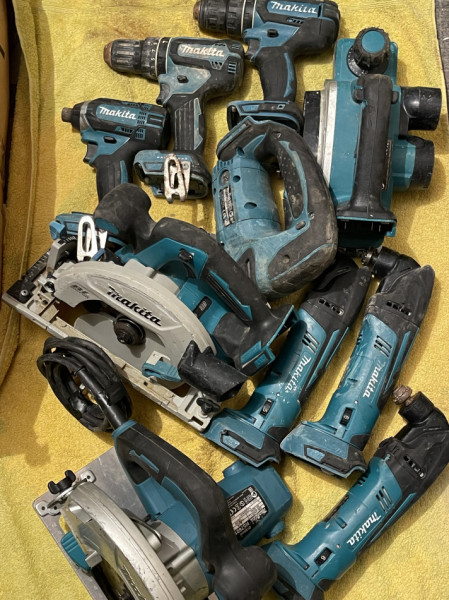 Witam sprzedam narzędzia Widoczne na zdjęciu część działa ,piła na 230 w bardzo dobrym stanie działająca, piła na baterie do wymiany łożysko bo piszczy ale działa ,impakt bardzo ładnie pracuje działający ,dwie wiertarki niesprawne do naprawy ,trzy urządzenia multitool do naprawy w jednej tylko silnik słychać że pracuję ,strug do drzewa nie działa do naprawy, wyrzynarka działająca. sprzedaje tylko w całości dostępne od soboty