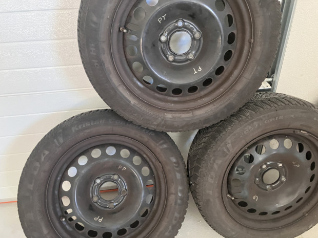 Sprzedam felgi stalowe do Opla stary J 16 cali na 5 śrub rozmiar widoczny na zdjęciach. Opony zimowe już raczej nie do użytku „gratis” .4 szt za 360 zł .Tel kont 501437035. odbior Przyszow