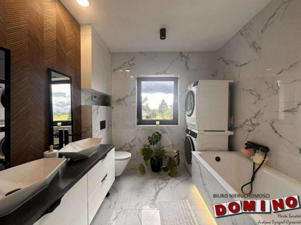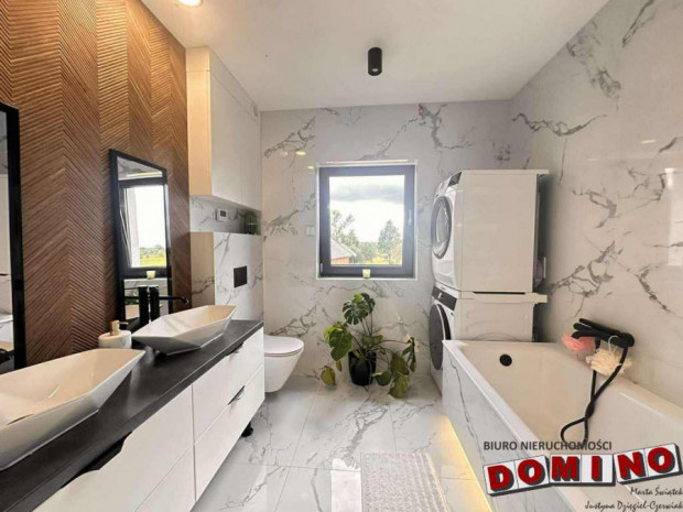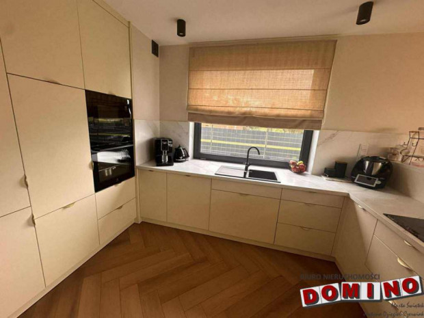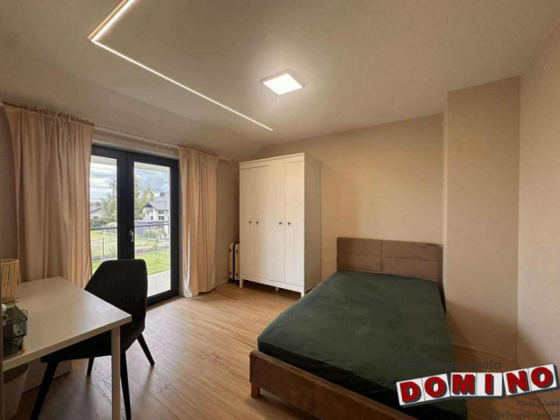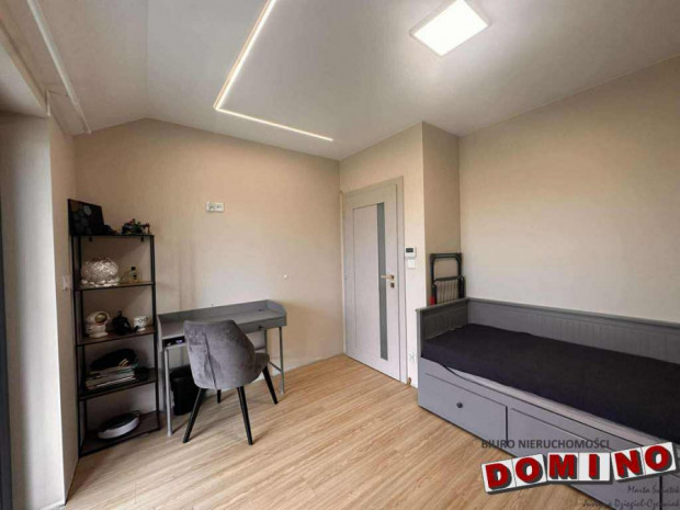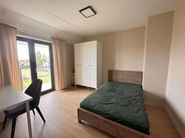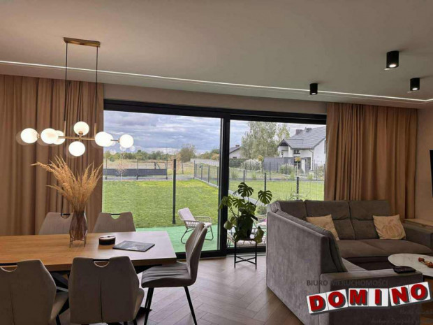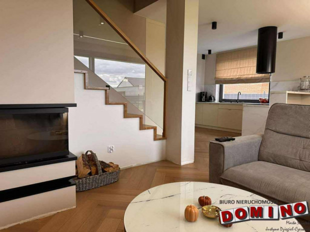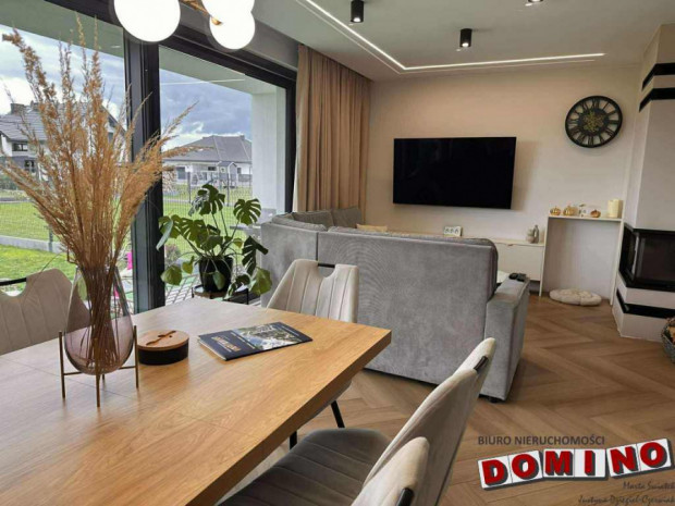 Dom z 2024 roku, ma funkcjonalny układ – salon z tarasem, otwarta kuchnia, kilka pomieszczeń które można zagospodarować według indywidualnych potrzeb nawet dla wieloosobowej rodziny. W bryle domu znajduje się garaż jednostanowiskowy. W cenie pozostaje pełne wyposażenie – meble i sprzęt AGD, dzięki czemu można wprowadzić się od razu.