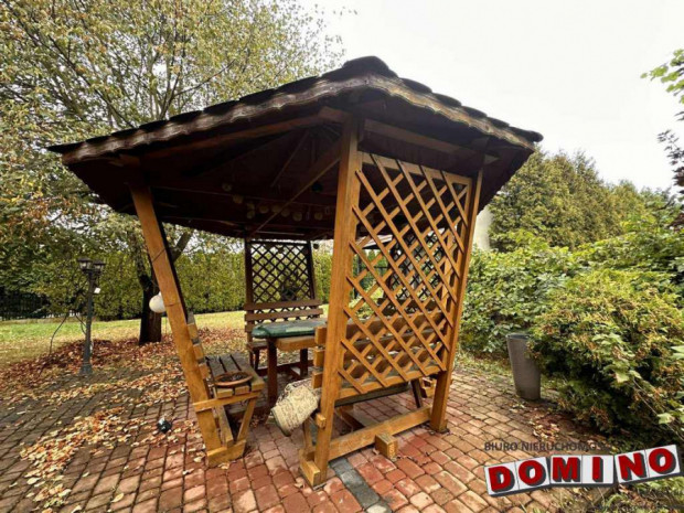 Pięknie zagospodarowana działka z dużą, drewnianą altaną, na której można spędzać letnie wieczory. Dodatkowo na posesji znajduje się domek, który może pełnić funkcję gościnnego lub gospodarczo-magazynową.