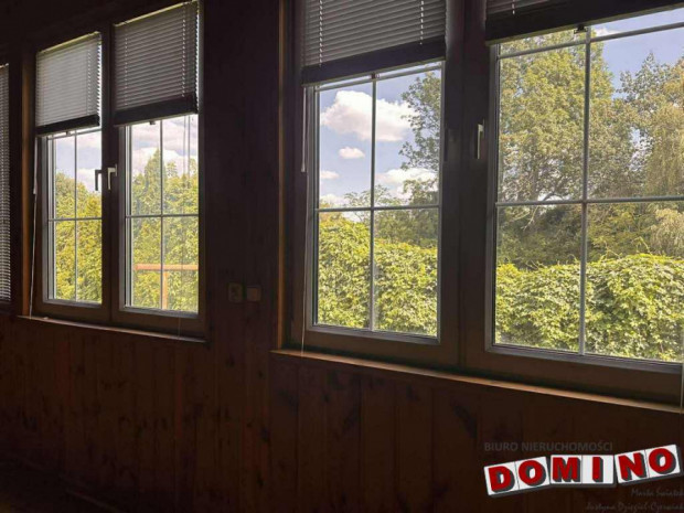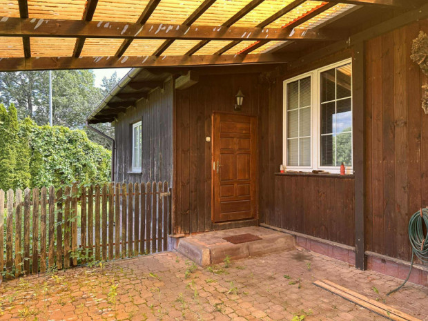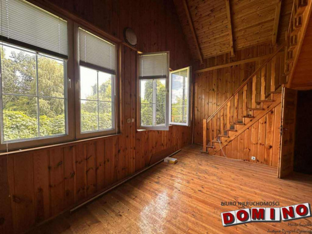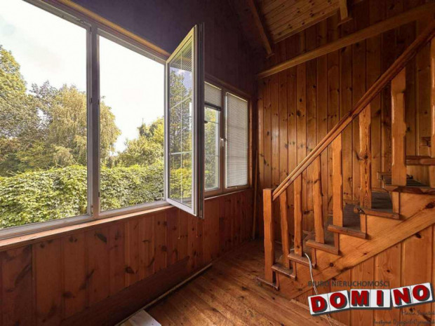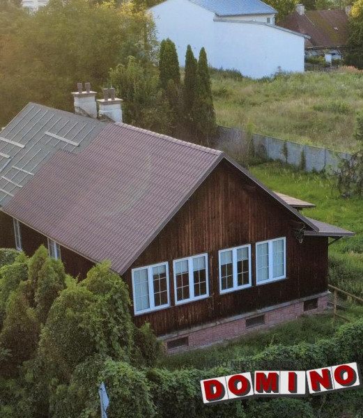 Na działce znajduje się dom wolnostojący o powierzchni zabudowy 157 m² (pow. użytkowej 107 m²), wymaga generalnego remontu – część konstrukcji została uszkodzona w wyniku pożaru. Budynek o konstrukcji drewnianej, zbudowany w 1935 roku z solidnych bali drewnianych, posadowiony na murowanych ścianach piwnic. Strop parteru wykonany z drewna, natomiast strop piwnic wylewany z żelbetonu. Dach o konstrukcji drewnianej, kryty blachodachówką, z elewacją wykończoną deskami drewnianymi. Stolarka okienna PCV, drzwiowa – drewniana, dębowa. Podłogi w pomieszczeniach mieszkalnych wykonane z desek na legarach.