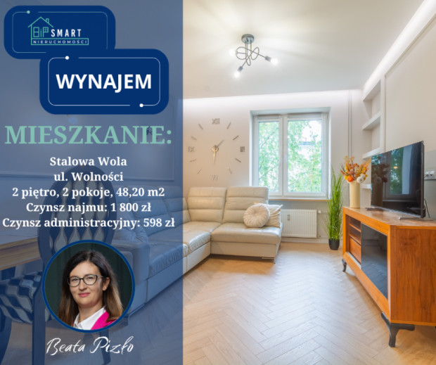 Biuro BiP Smart prezentuje ofertę wynajmu gustownego mieszkania o powierzchni 48,2 m², położonego na 2 piętrze w świetnej lokalizacji – przy ul. Wolności w Stalowej Woli.