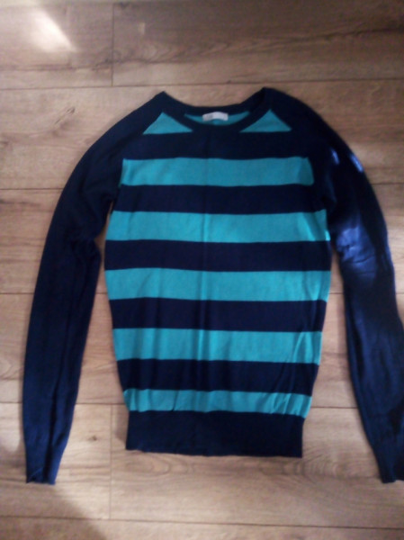 Sweter zielono-granatowy, rozmiar M, długość 66cm, odbiór Stalowa Wola, Zaklików.