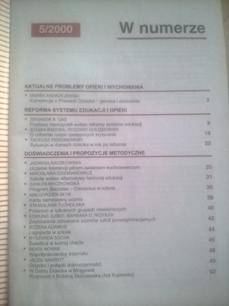 Czasopismo Problemy opiekuńczo wychowawcze z maja 2000 roku,