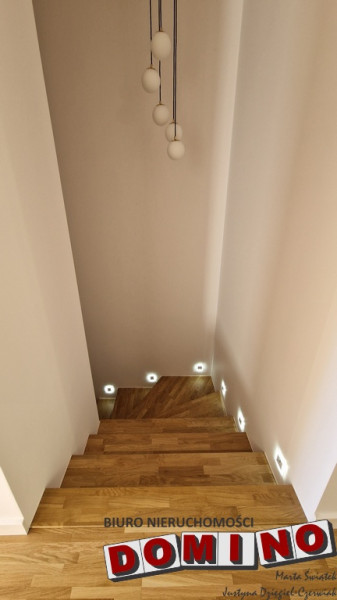 Wykończenie na najwyższym poziomie. Wnętrza zostały zaaranżowane przy użyciu wysokiej klasy materiałów, które zachwycają zarówno wyglądem, jak i trwałością. Schody zostały wykończone szlachetnym dębowym drewnem, które łączy w sobie naturalne piękno i ponadczasową trwałość. Podłogi pokryto klasyczną deską barlinecką. Kuchnia jest w pełni wyposażona w nowoczesny sprzęt AGD – gotowa, by od razu cieszyć się gotowaniem. Przedpokój wyposażono w wygodną szafę z siedziskiem i designerski grzejnik będący lustrem. Łazienka z eleganckim prysznicem liniowym łączy w sobie minimalizm i wygodę.
