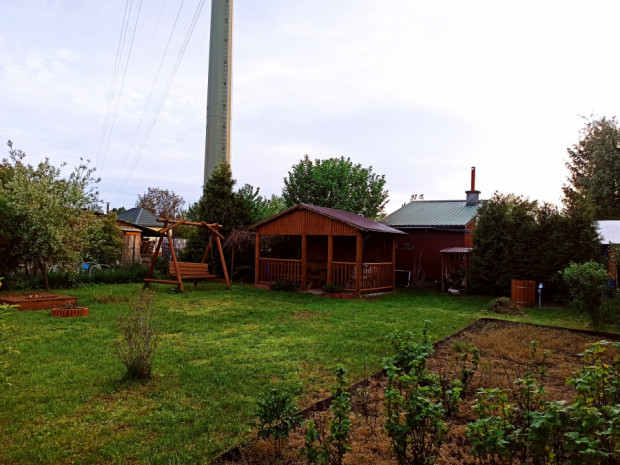 Schowek na narzędzia i rzeczy ogrodowe połączony bezpośrednio z altaną.