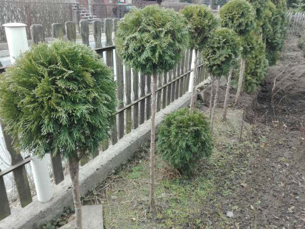 4. Kula na pniu tuja szmaragdowa średnica około 75 cm.