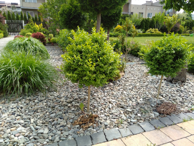 1. Bukszpan zimozielony, różne średnice od 15 cm do 70 cm., różne wysokości pnia: