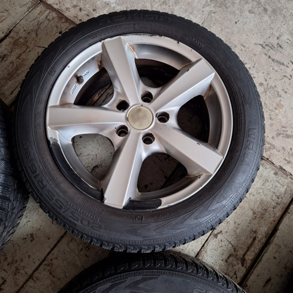 Felgi jak widać gdzieniegdzie rysy lub na niektórych schodzi lakier ale na zimę jak najbardziej idealne być nie muszą lub można podlakierować sprayem :)