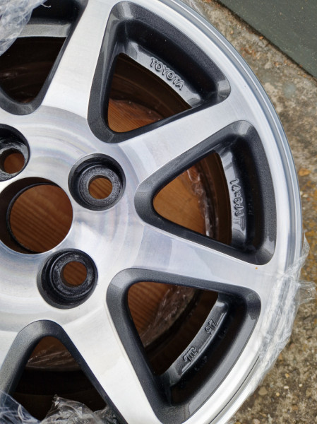Felgi aluminiowe po profesjonalnej renowacji-nie zakładane 4x100 ET 45,6 cali otw.centr.54,1.Komplet oryginalnych nakrętek i kołpaków. Cena do ustalenia.Pasuja do Toyota Corolla,Yaris,Hyundai itd.