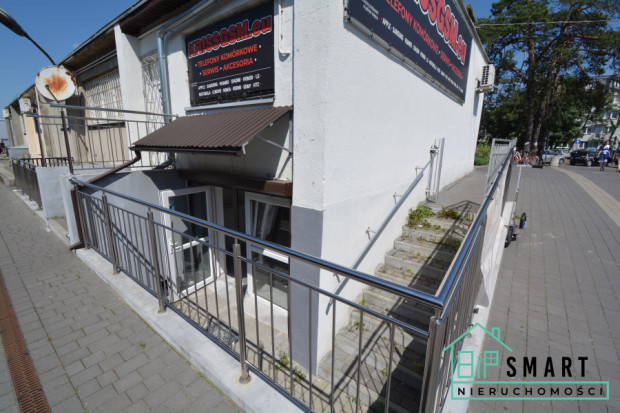 Lokal usytuowany jest na poziomie -1 budynku usługowego. Prowadzi do niego niezależne wejście schodami z boku obiektu, co zapewnia prywatność i komfort użytkowania. Przy zejściu zamontowana jest solidna barierka – doskonałe miejsce na baner reklamowy, zwiększający widoczność prowadzonej działalności. Dodatkowo istnieje możliwość umieszczenia reklamy na elewacji budynku.
