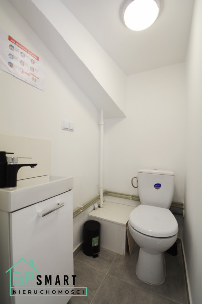 Dobry stan techniczny lokalu pozwala na szybkie uruchomienie działalności, bez konieczności ponoszenia dodatkowych kosztów czy remontów. Wewnątrz wydzielono oddzielne pomieszczenie sanitarne (toaleta). Dzięki ustawnemu planowi w kształcie kwadratu, przestrzeń daje wiele możliwości aranżacyjnych.