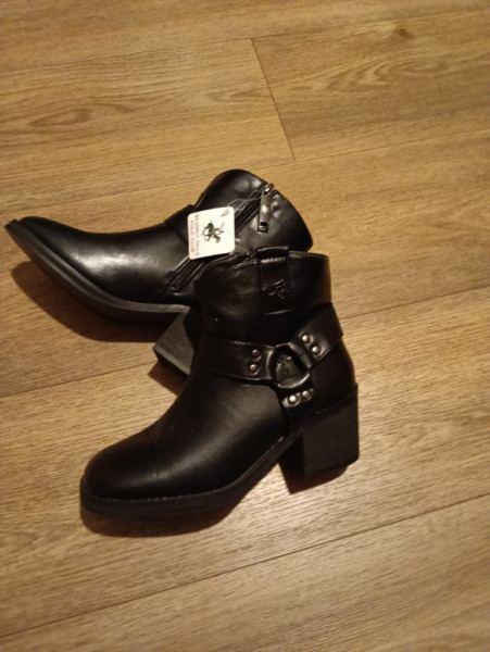 Sprzedam nowe czarne botki Polo Club. rozmiar 37, wysokość obcasa 6cm