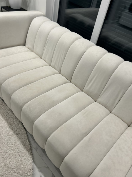 Elegancka, beżowa sofa o długości 250 cm. Wykonana z wysokiej jakości materiałów, zapewniająca komfort i trwałość. Idealna do salonu lub sypialni, nadając wnętrzu nowoczesny i stylowy charakter. Wymaga czyszczenia chemicznego.