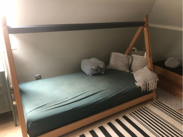 Sprzedam drewniane łóżko dla dziecka Tipi z materacem o wymiarach 190 x 90 cm. Zarówno łóżko jak i materac są w bardzo dobrym stanie. Łóżko łatwe do rozkręcenia i przewiezienia.