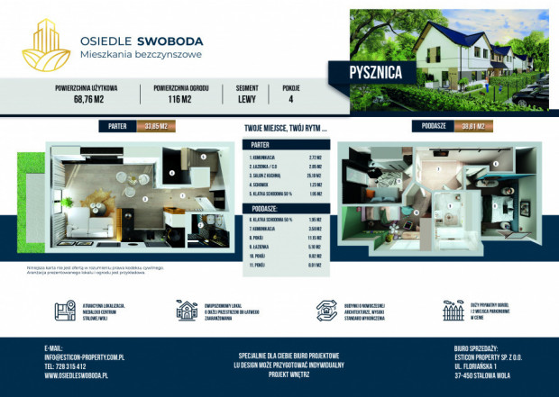 Na sprzedaż nowe bezczynszowe lokale mieszkalne w domach w zabudowie bliźniaczej, w stanie deweloperskim na nowopowstającym Osiedlu Swoboda w Pysznicy.