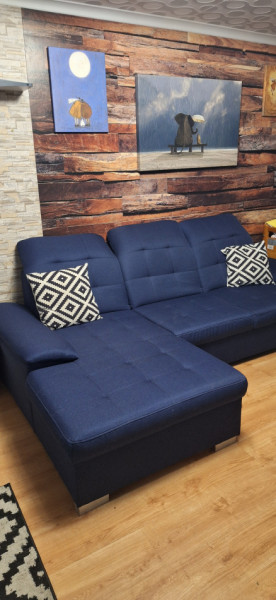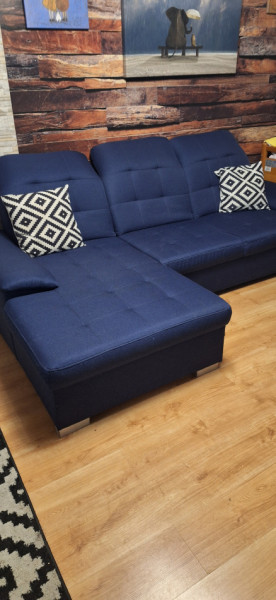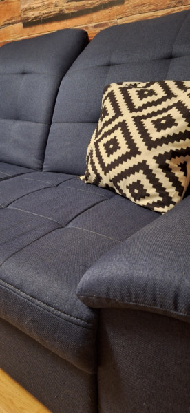 Witam mam na sprzedaż narożnik z funkcją spania w kolorze granatowym używany kupiony w agata meble . Posiada małe ślady użytkowania.