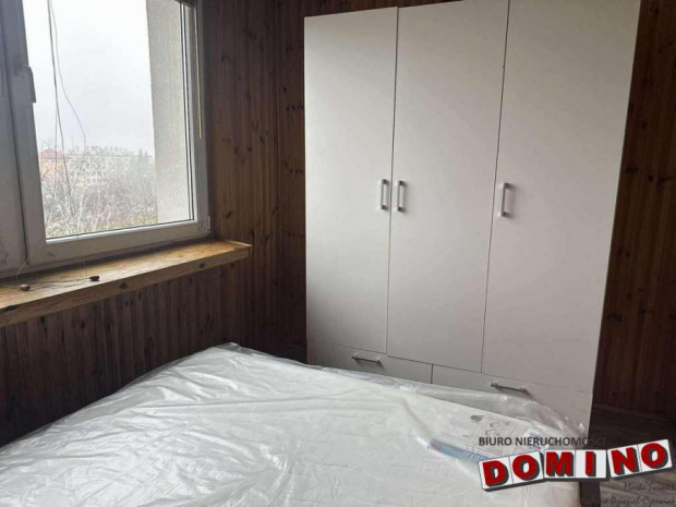 Sypialnia: duże, łóżko z nowym materacem, szafa trzydrzwiowa na ubrania i dodatkowe przechowywanie.