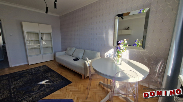 Mieszkanie składa się z: dwóch samodzielnych, ustawnych pokoi, oddzielnej, jasnej kuchni w białej zabudowie z pełnym wyposażeniem w sprzęt AGD, klasycznie wykończonego salonu o przytulnym charakterze, sypialni urządzonej w spokojnych, stonowanych barwach, łazienki po remoncie, w pełni przystosowanej do codziennego użytku, oraz przestronnego przedpokoju.