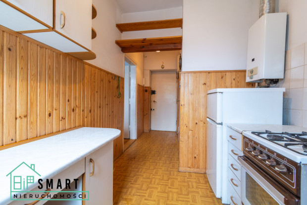 Do mieszkania przynależy również piwnica. Ogrzewanie miejskie. Ciepła woda użytkowa podgrzewana termą gazową. Na podłodze w pokoju znajduje się parkiet, w pozostałych pomieszczeniach wykładzina PCV. Budynek zadbany, z miejscami postojowymi dla mieszkańców na ogólnodostępnym parkingu pod blokiem.